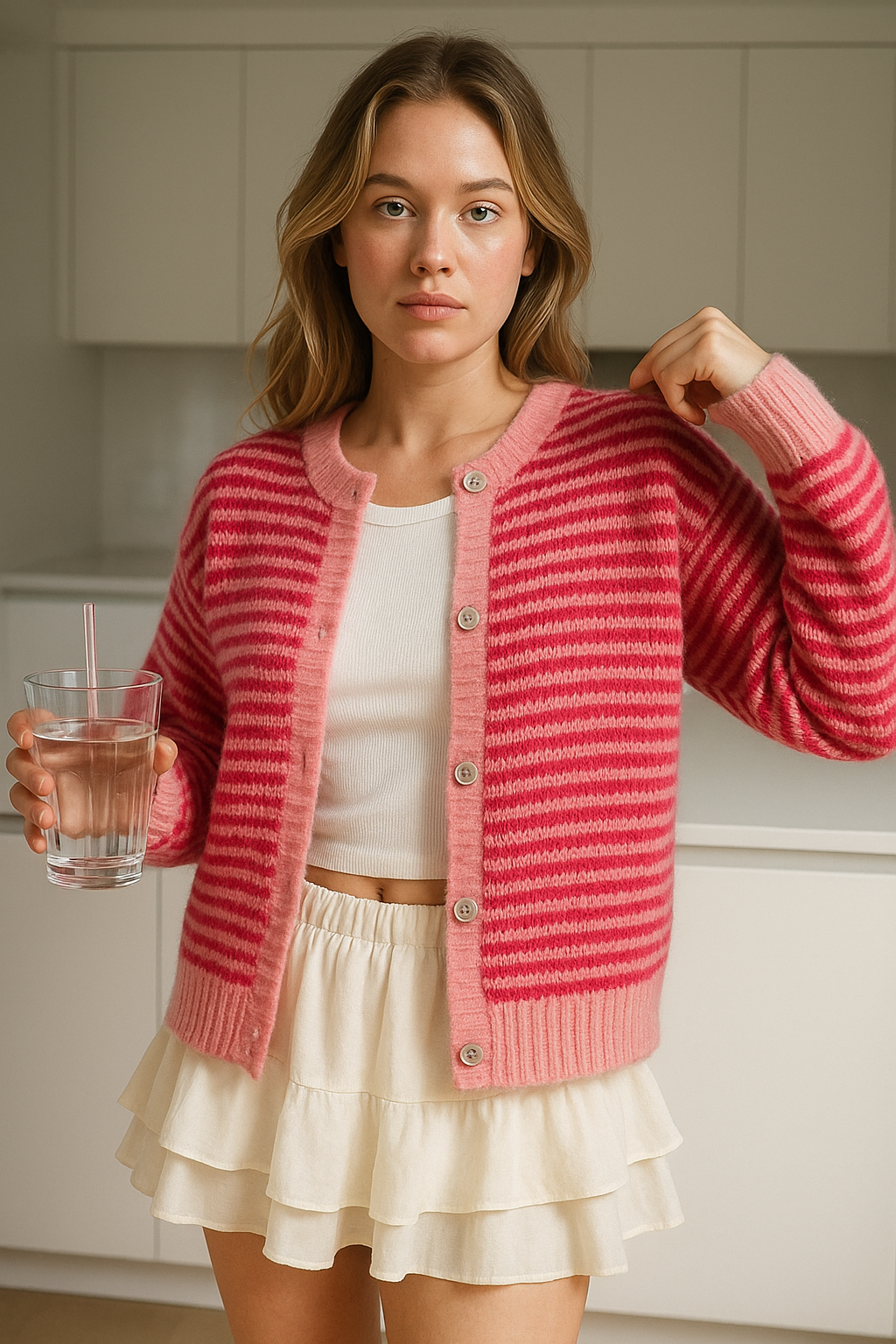 Una mezcla dulce de rayas y color FRESA con un estilo versátil para lucir en cualquier ocasión.
